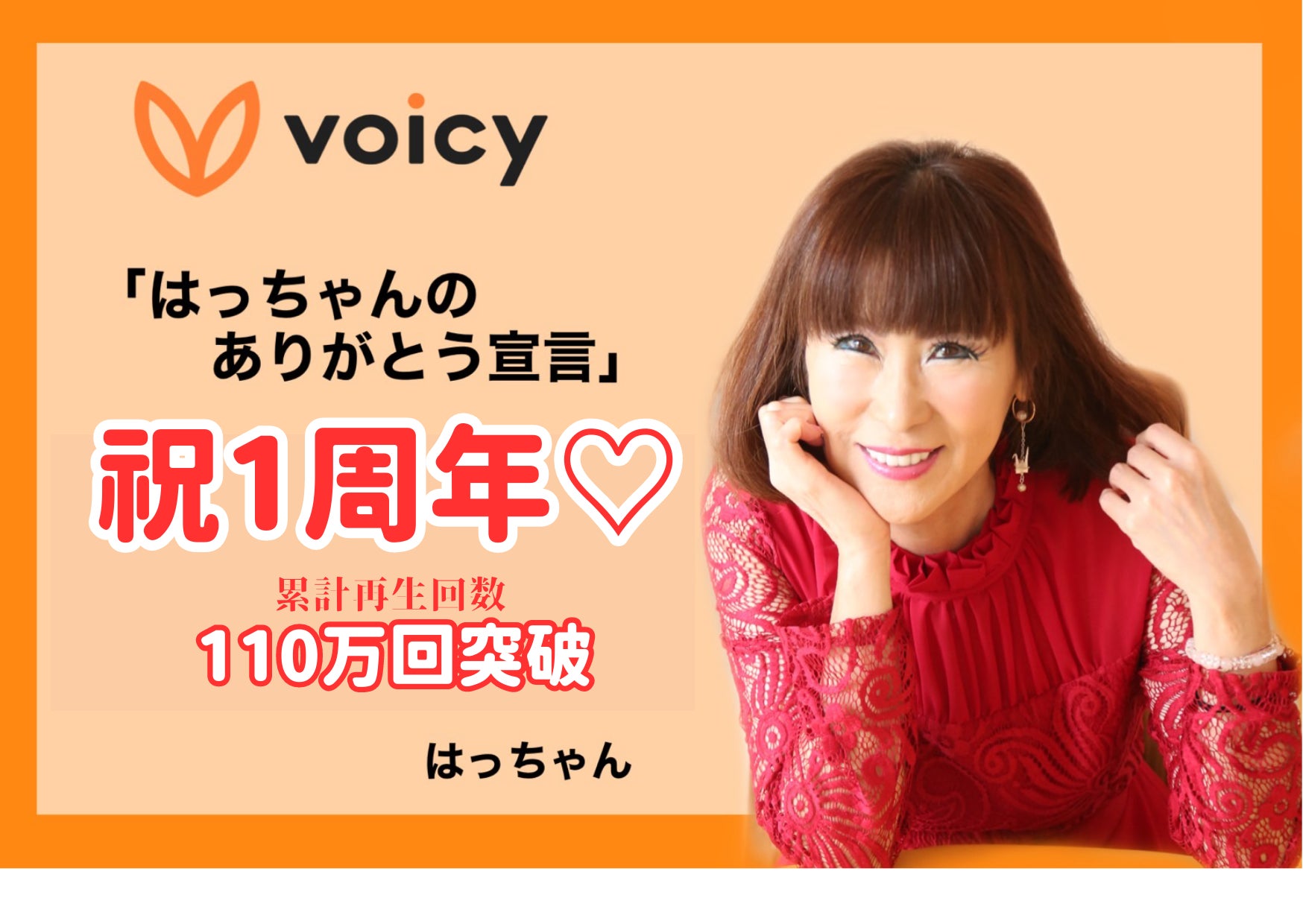 【株式会社愛しとーと】音声プラットフォームVoicy「はっちゃんのありがとう宣言」開設1年 累計再生回数ミリオン超え!