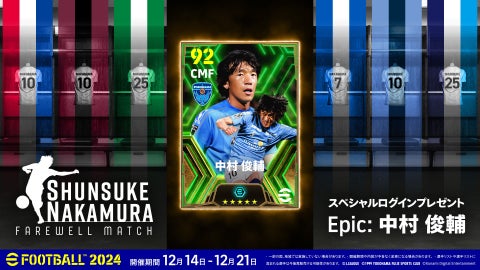 この試合に合わせて、『eFootball™ 2024』では特別バージョンの中村俊輔選手が登場し、キャンペーンも開催されます。
