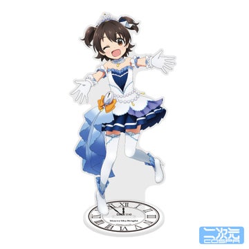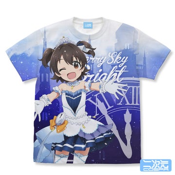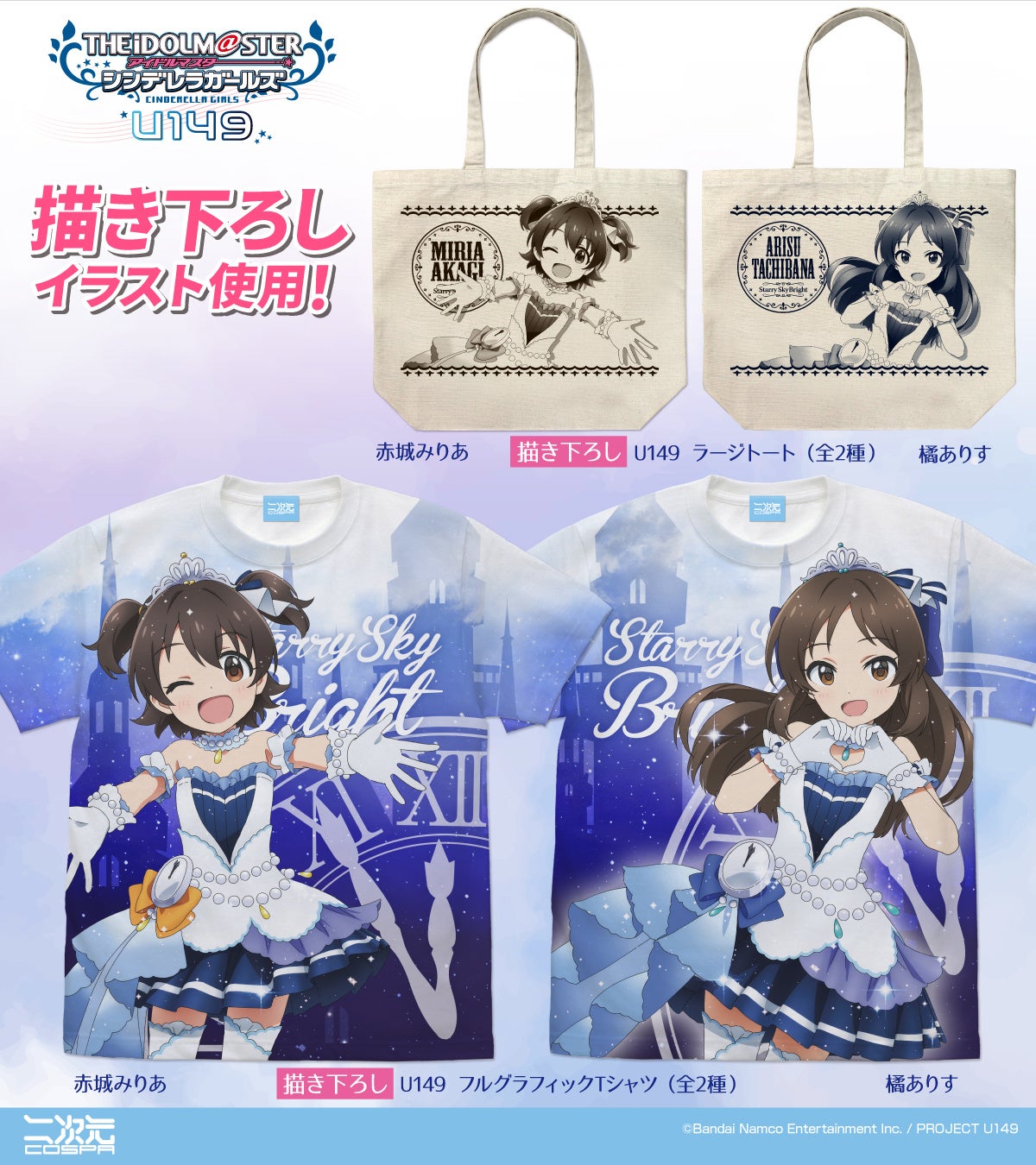 橘ありすと赤城みりあがスターリースカイ・ブライトの衣装を着たアクリルスタンドやタペストリー、缶バッジ、Tシャツ、トートバッグなどが販売されます。