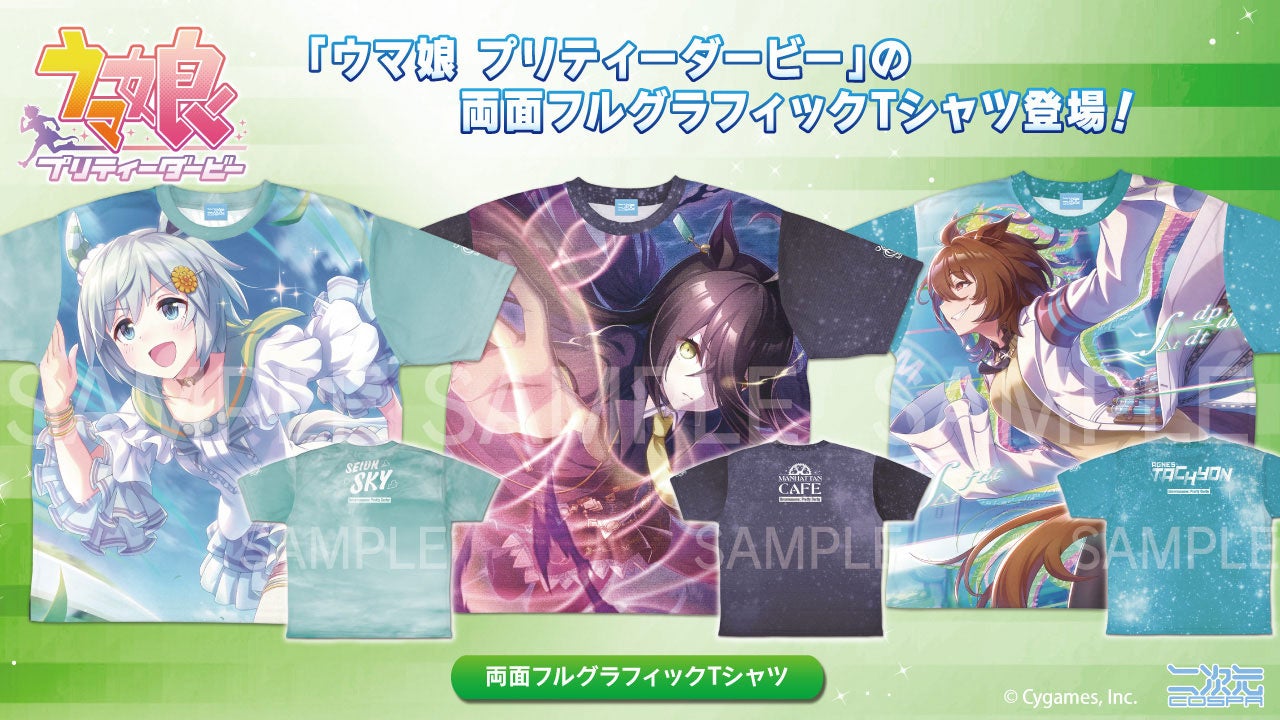セイウンスカイ、マンハッタンカフェ、アグネスタキオンの3人のウマ娘が両面フルグラフィックTシャツに登場します。