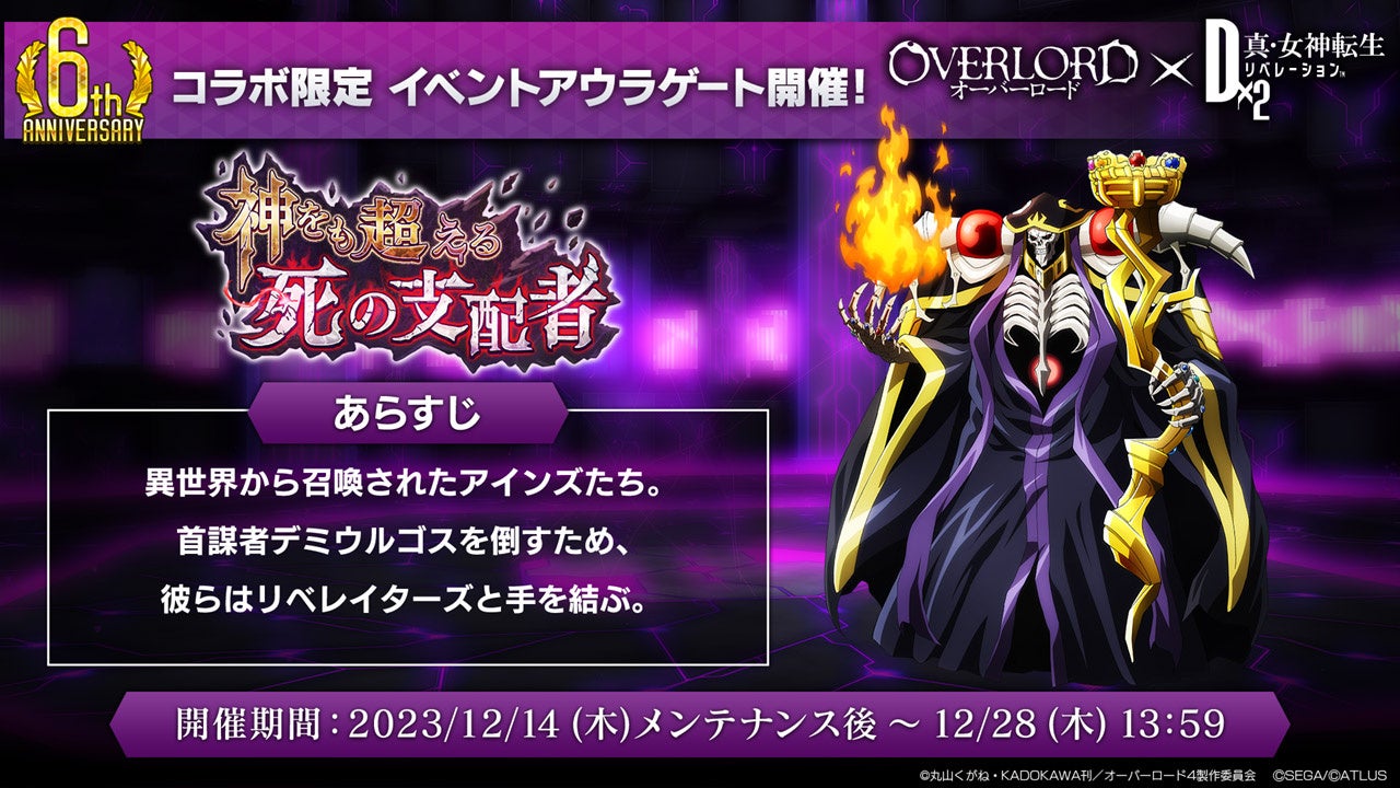 「オーバーロード」と「D×2」がコラボPVを公開しました!期間限定イベント「神をも超える死の支配者」では、アウラゲートを探索して「ユグドラシル金貨」を手に入れ、様々なアイテムと交換できます。
