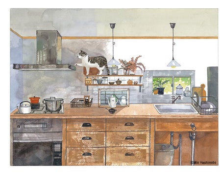 くさかみなこは保護猫のピノとモナと共に東京の郊外で暮らし、はしもとみおは三重県の古い倉庫で木彫りの彫刻を制作しています。