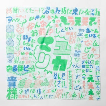• マユリカのマルチクロスは、漫才やラジオの会話からインスピレーションを得たデザインで、ファンならふたりの声が脳内で再生されること必至