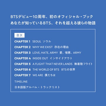 - デビュー10周年を迎えたBTSの素顔と軌跡を知ることができる、待望の電子版です。