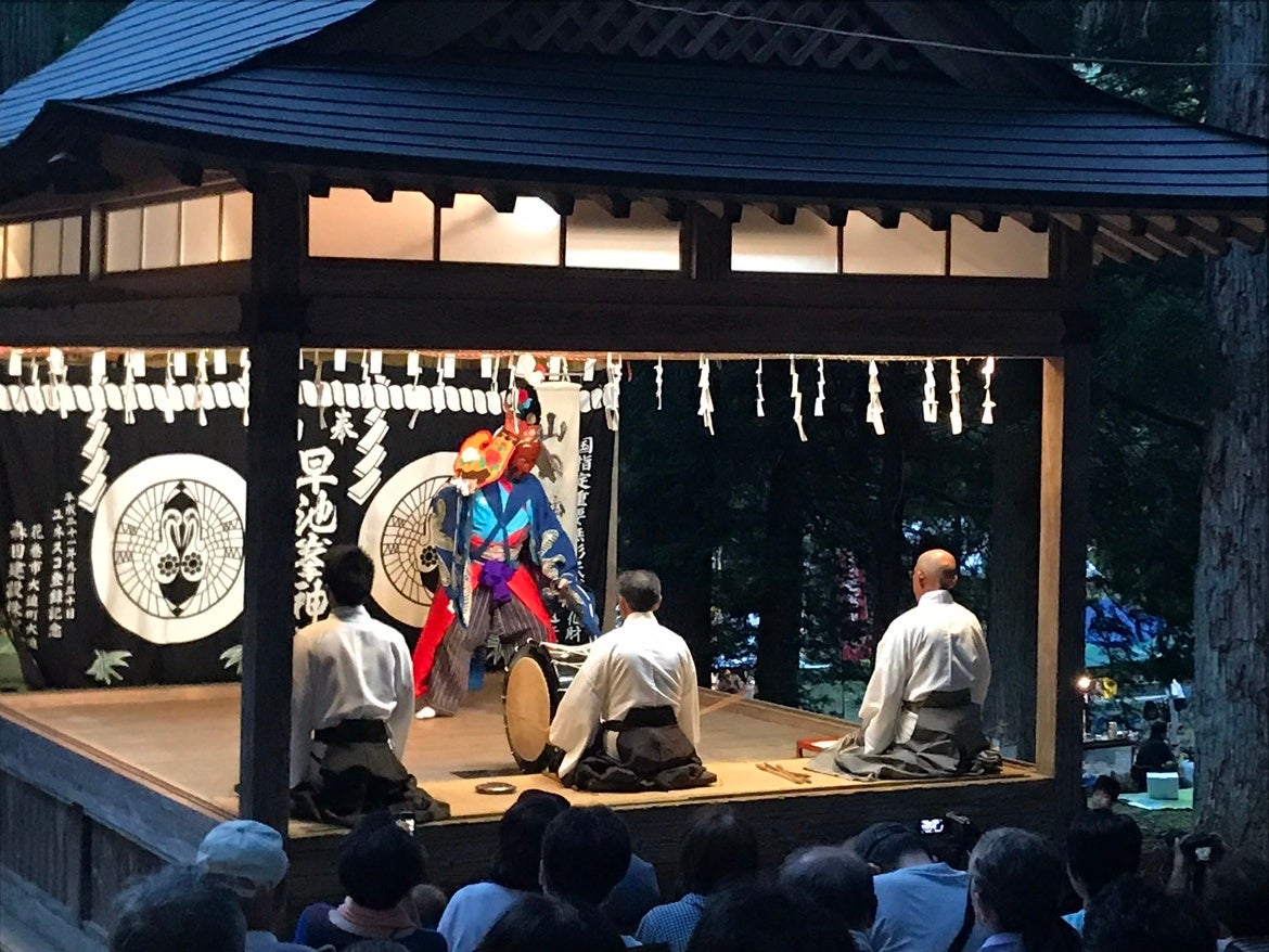 - 神事芸能で、古くは神座に神様を迎えて行われていました