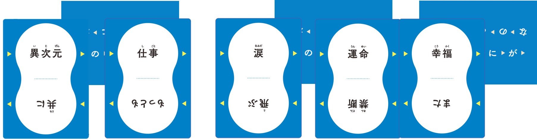- プレイヤーはお題カードの意味やシチュエーションを想像し、日本語カードを組み合わせて親に伝える