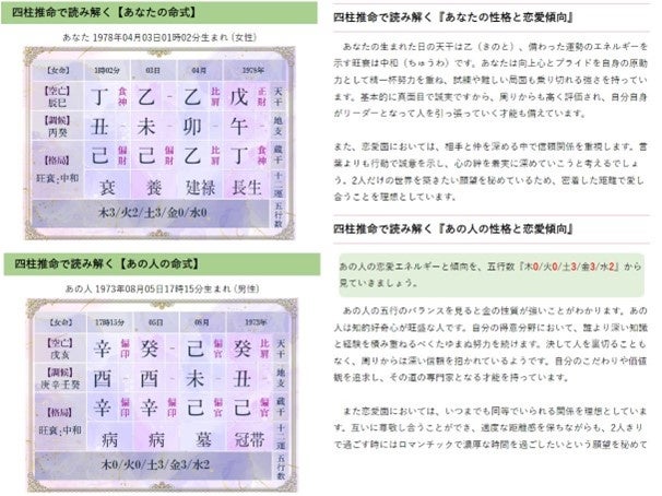 - 「うらなえる」で提供される四柱推命による相性鑑定