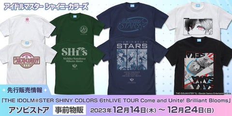 • 新商品は、283プロ イルミネーションスターズのユニットTシャツ、芹沢あさひの【さかさま世界】プリントTシャツ、283プロ シーズのTシャツ、樋口円香の【ダカラ】プリントTシャツ、アルストロメリアの「うまストロメリア!」Tシャツ。
