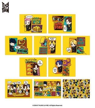- RM、Jin、SUGA、jhope、Jimin、V、Jung Kookの2Dキャラクターが詰まっている