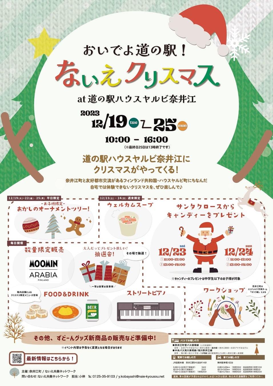 北海道奈井江町の道の駅ハウスヤルビで、初のクリスマスイベント「おいでよ道の駅!ないえクリスマス」が開催されます。