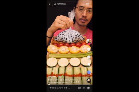 - トレイに並べた食材をリズミカルに食べる早送り系モッパンASMR動画も配信