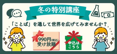 この冬、学びの世界への一歩をプレゼントしませんか?「ことばを通じて子どもたちの世界を広げる」をコンセプトに、3つのユニークな講座をご用意しました。