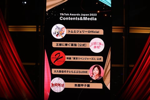 また、TikTok Awards Japan 2023 Contents&Mediaでは、ドラマやアニメ、映画などの作品を通じてユーザーを魅了したアカウントも選出されました。