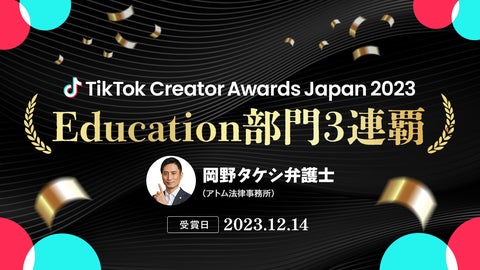 - 岡野タケシ弁護士: Education部門の最優秀賞を3年連続受賞