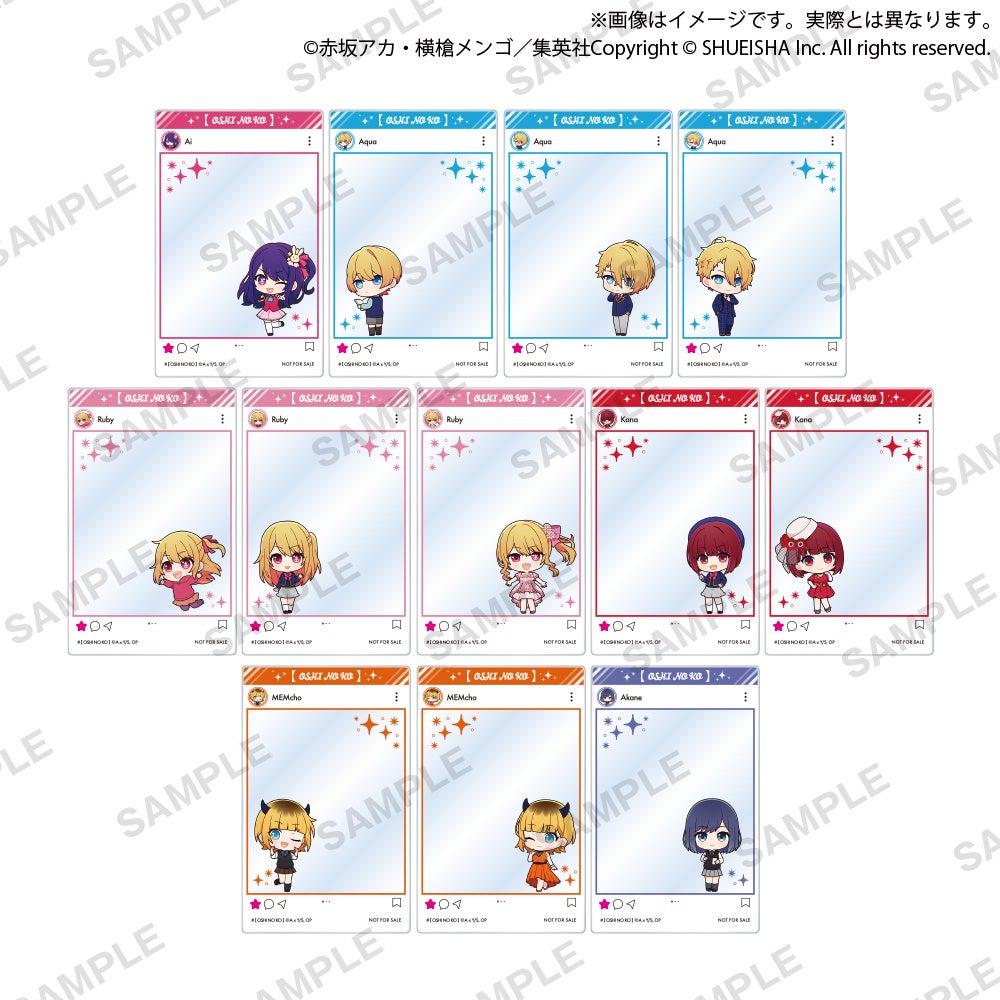 描きおろしイラスト、【推しの子】焼き&ノベルティ付きドリンク、SNS風クリアカード、ランダムな特典、物販商品、ミニキャラグッズ、描きおろしイラスト「アイ」のビッグジオラマアクリルフィギュア