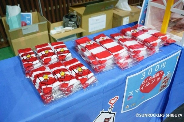 300円以上の募金でスマイルソックス、1,000円以上の募金でオリジナルトートバッグがもらえます。