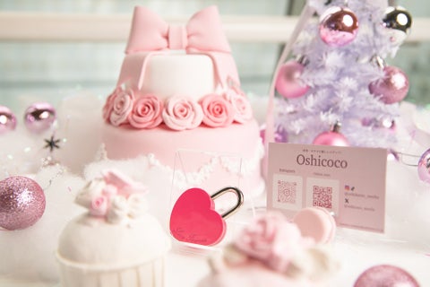 - ホールケーキ、カップケーキ、ミニツリー、ぬいぐるみ、アクリルスタンド、ハートロック、お名前キーリング、ラインストーン