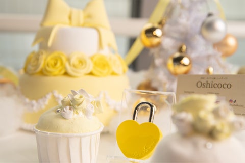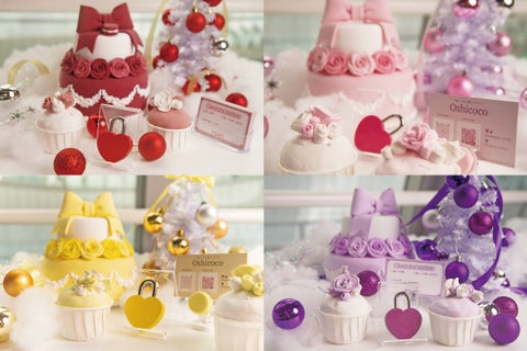 クレイアート作家によるカラーコーディネートされたホールケーキやカップケーキ、ミニツリーが飾られ、7色展開で楽しめます。