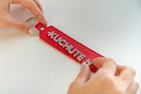 - お名前キーリングの販売も始まり、ラインストーンのアルファベットチャームをセットできる
