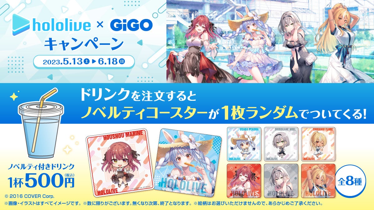 GiGOグループのお店で「ホロライブ」とのコラボキャンペーン「hololive×GiGO キャンペーン」が2023年5月13日から開催される。