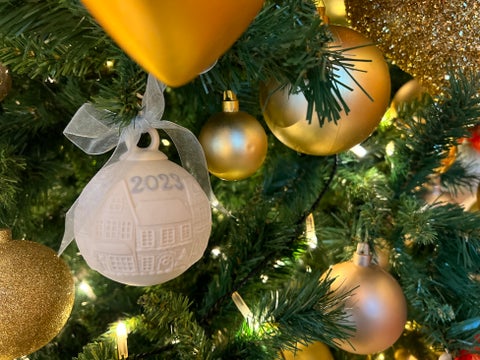 - リヤドロのオーナメントやテーブルランプで飾られたクリスマスツリー