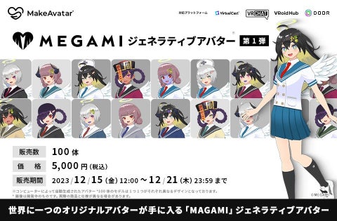 - 「MEGAMI」ジェネラティブアバターは、4体のベースモデルからランダムに組み合わせられた3DCGアバター