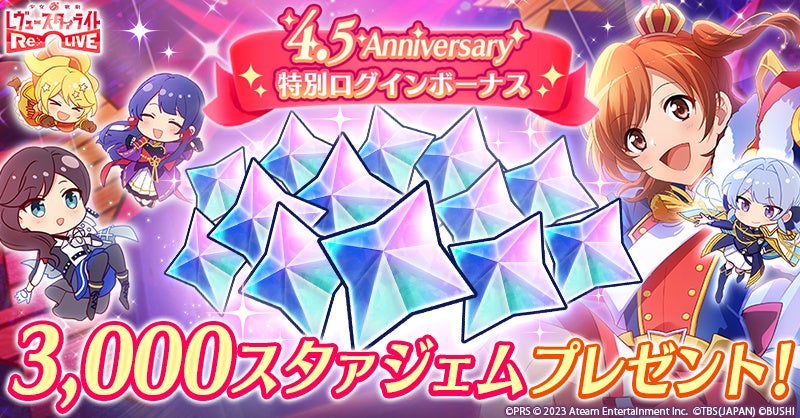 4.5周年を記念して、期間中の初回ログイン時に3,000スタァジェムをプレゼント!
