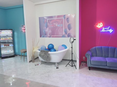 - 店内には写真ブースもあり、商品購入者は無料で利用可