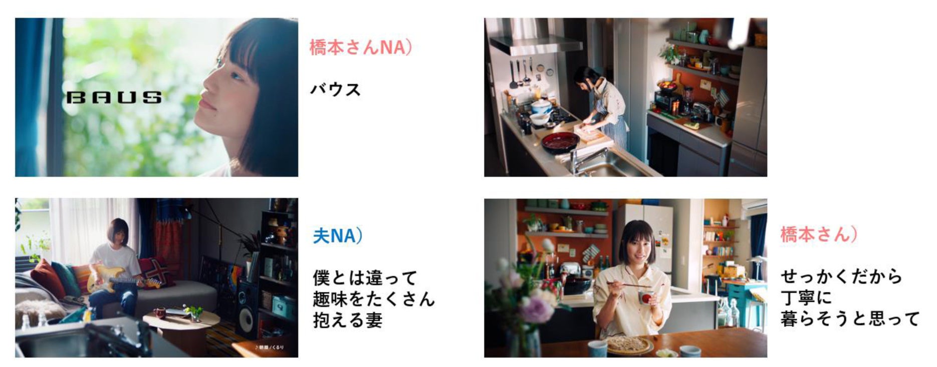 - 俳優の橋本愛さんが主人公を演じ、夫婦が「BAUS」の住まいで趣味を楽しむ様子が描かれる