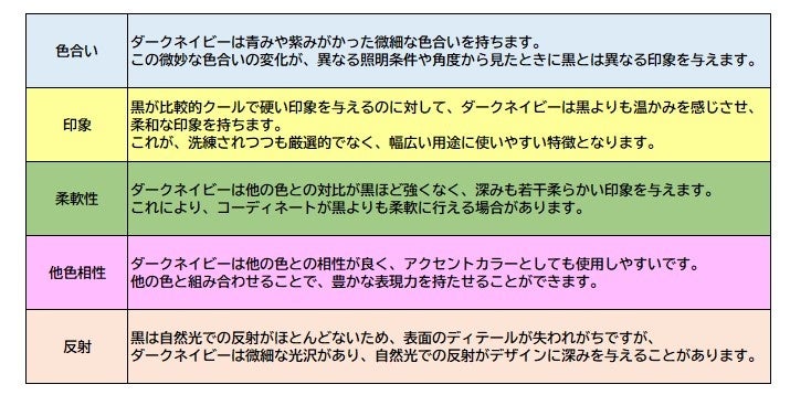 - 『黒にかわるダークネイビー』のサンプル提供あり