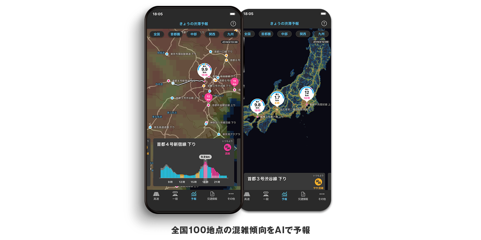 - 2. 全国100区間の渋滞を予測し、いつもよりも混んでいるかをグラフや地図上で表示する「AI渋滞予報」を開始