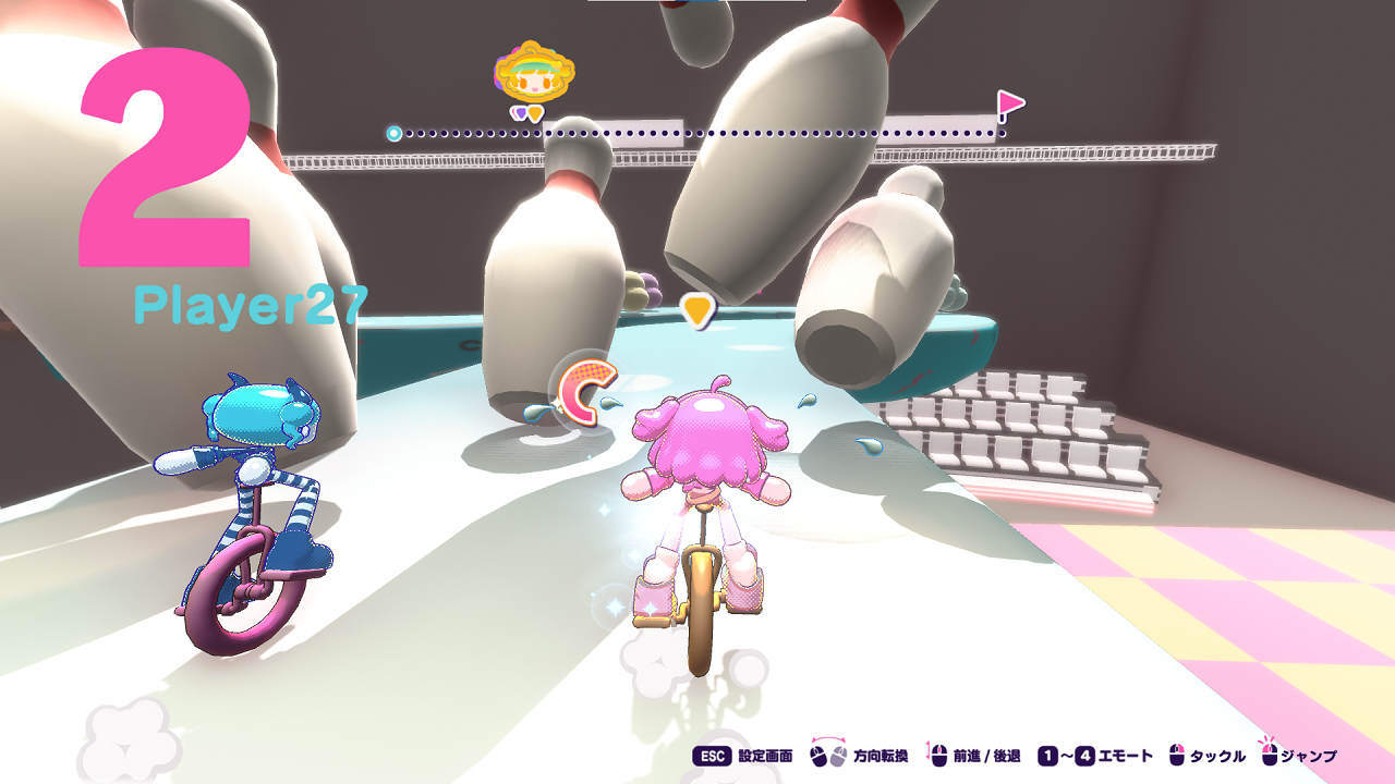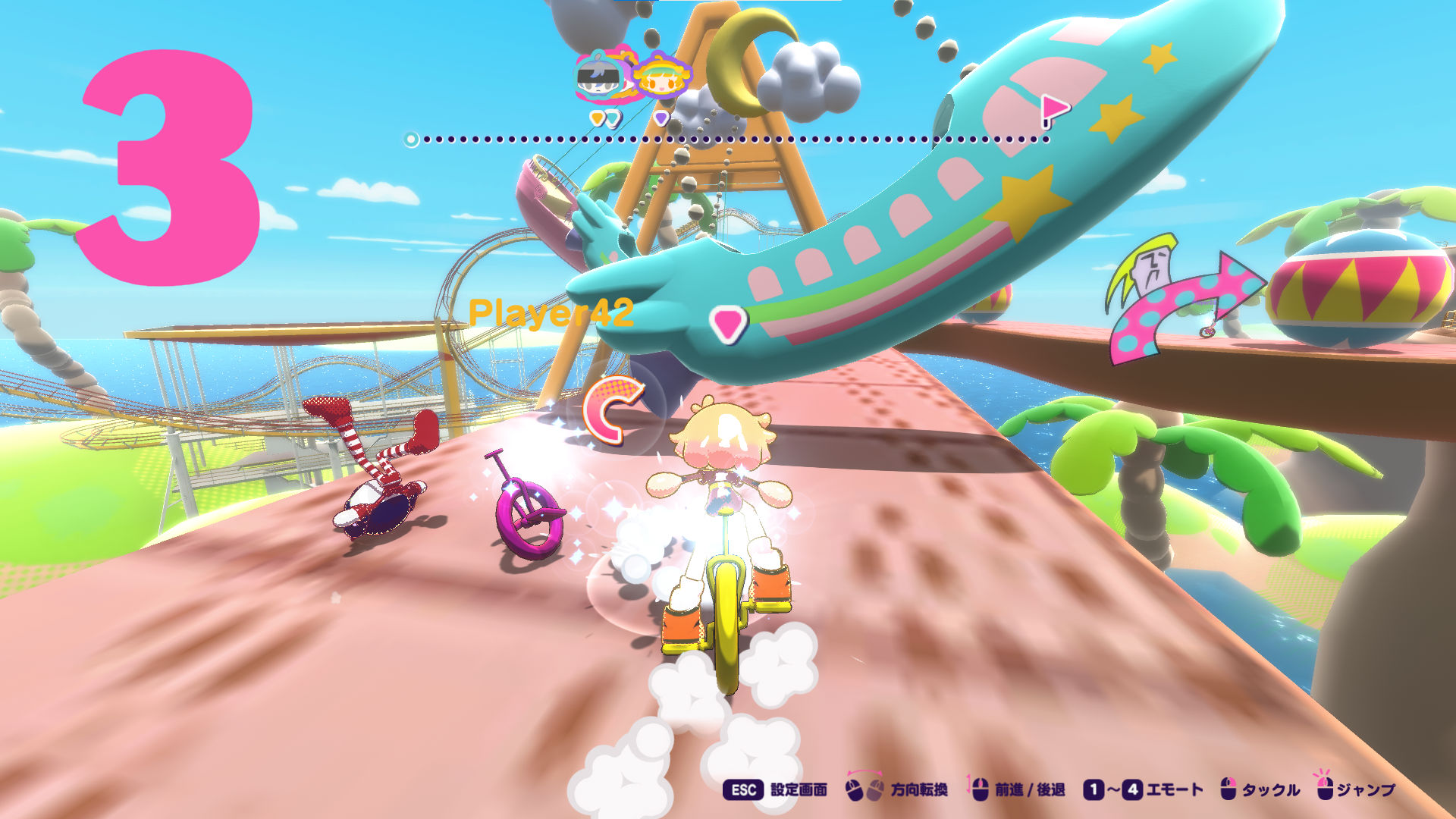 - 最大4人で対戦する一輪車おじゃまレースゲーム。