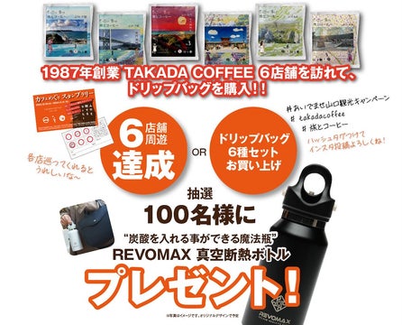 キャンペーンでは、対象の6店舗を巡りスタンプを集めると、抽選で100名にTAKADA COFFEEならではの素敵な商品がプレゼントされます。