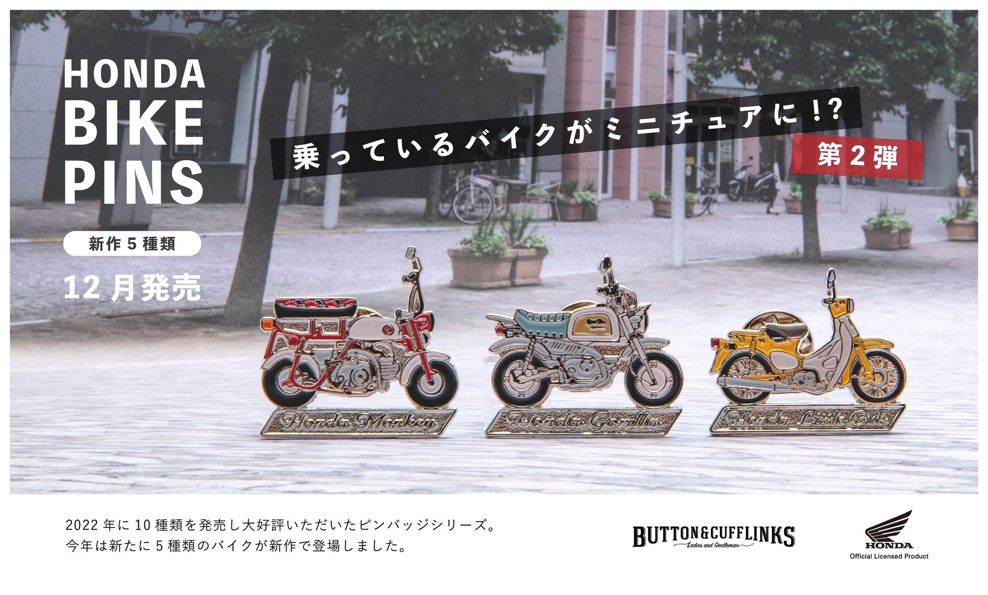 - 「BUTTON&CUFFLINKS」は本田技研工業の人気二輪車を題材にしたオリジナルピンバッジを製作しています。