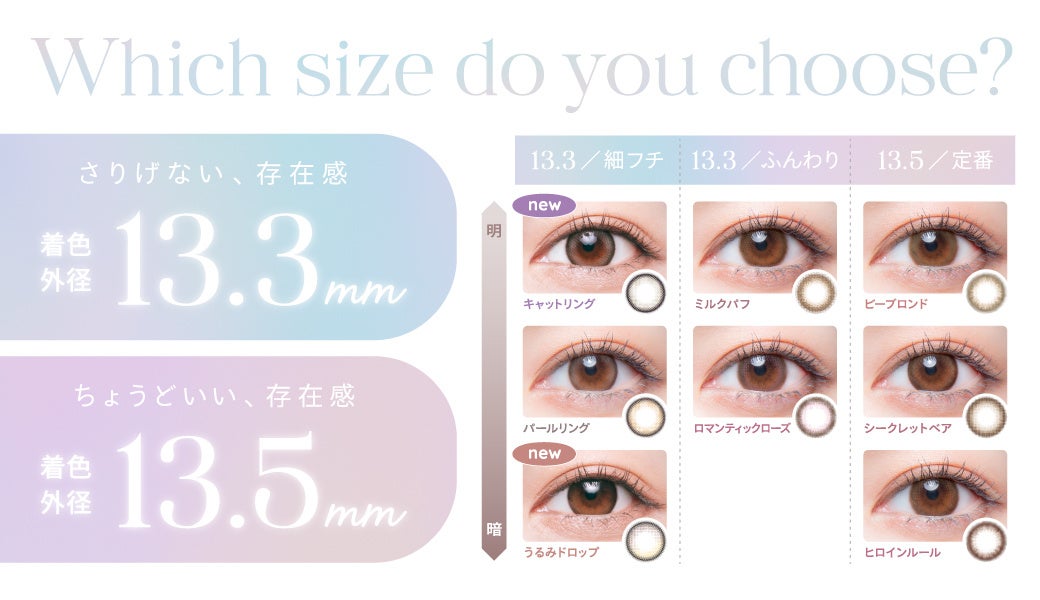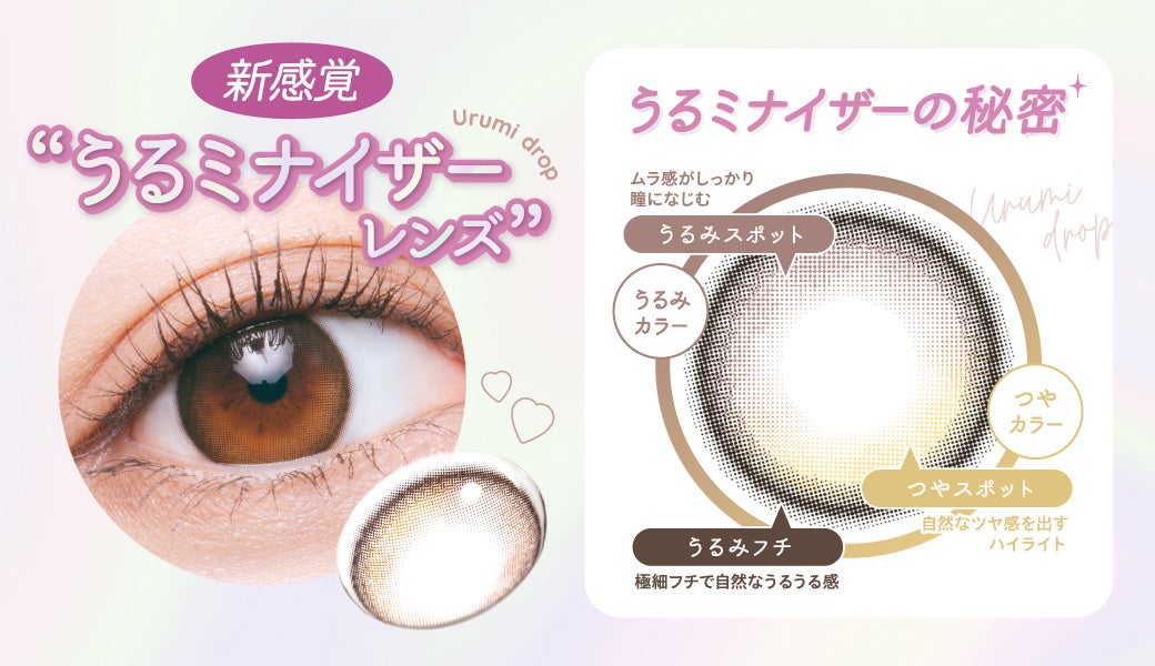 特に注目は「うるみドロップ」で、うるんだ瞳に自然なつや感を与える新感覚のレンズです。