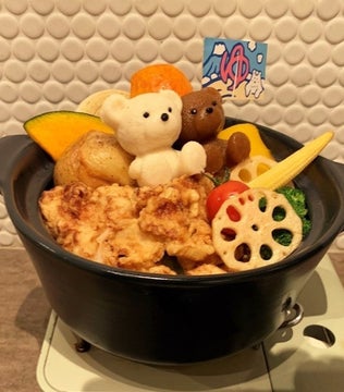 小さなくまちゃんがスープカレーのお鍋に浸かる姿はとても可愛らしいです。