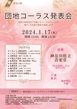 その一環として、県営団地で活動するシニア合唱グループが令和4年度から取り組んできた「県営団地におけるシニア合唱事業」の成果を発表するため、発表会を開催することをお知らせいたします。