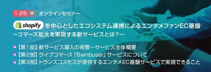 セミナーでは、新サービスの全体像やBambuserの使い方、エンタメファンEC基盤サービスで実現できることについて詳しく解説いたします。