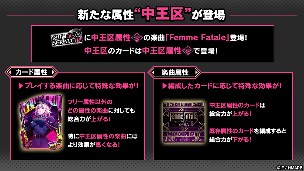 中王区属性は既存属性とは異なる特徴を持ち、カードや楽曲にそれぞれ存在します。