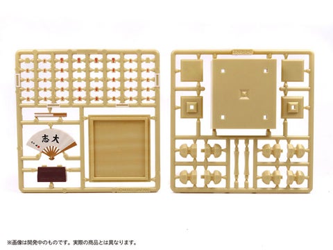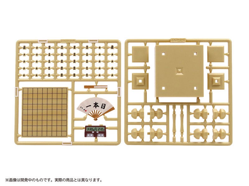 フルカラー印刷を施した塗装不要のプラキットで、小さな将棋盤セットが再現されています。