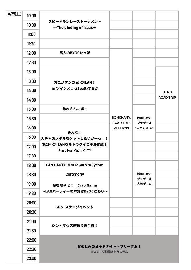 - ゲーム機持ち込み型パーティー「C4 LAN 2023 SPRING」のコミュニティステージのタイムテーブルが公開された。