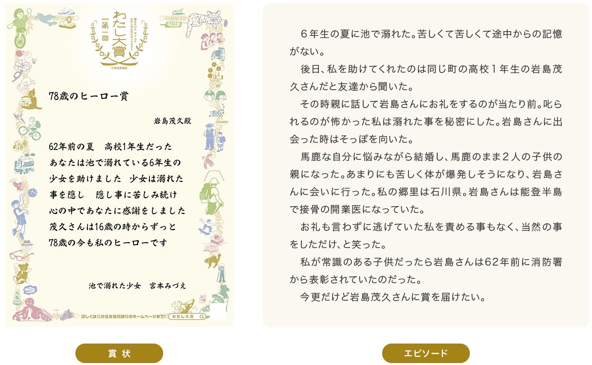 - 三井住友信託銀行が第1回「わたし大賞」の受賞作品を発表