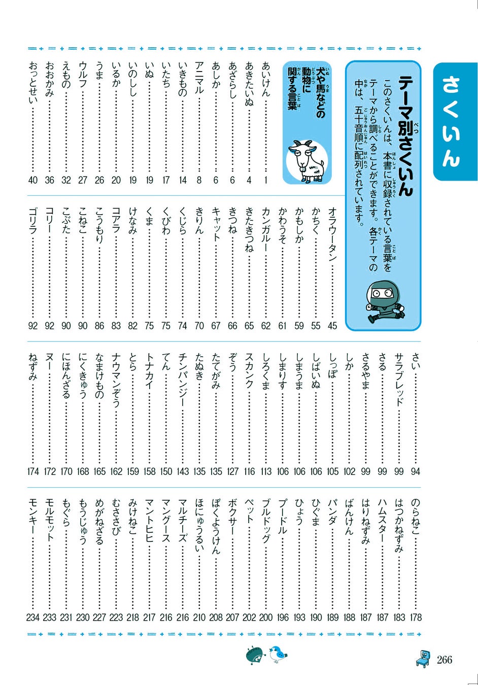 • テーマ別索引で植物や食べ物などからも探せる