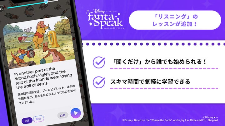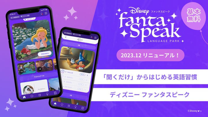 ディズニー ファンタスピークは、ディズニー作品やピクサー作品を通じて英語の4つのスキルを学ぶアプリです。