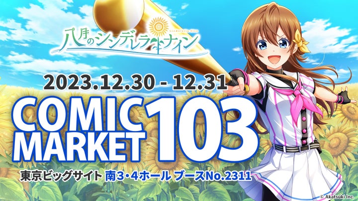 アカツキゲームスのブースでは、八月のシンデレラナインの新作グッズの販売やC103特製ショッパーの無料配布が行われます。