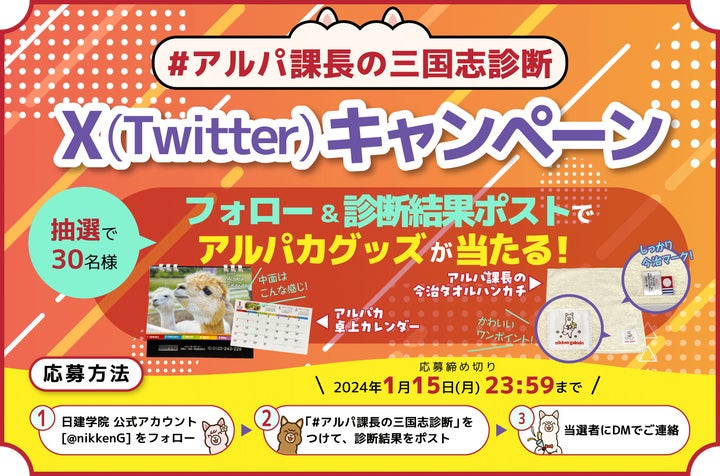 現在、「アルパ課長の三国志診断キャンペーン」を実施しており、2024年1月15日まで受付中です。
