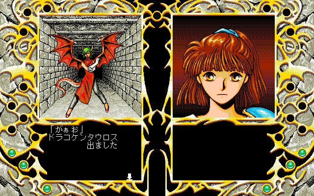 PC-9801版ではグラフィックスがリアルになり、敵とのエンカウントメッセージもユニークなものになっています。