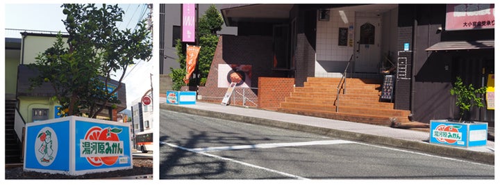 湯河原町はみかんの産地でもあり、町内にはみかん箱のオブジェや自然の中で宝探しを楽しめる場所もあります。