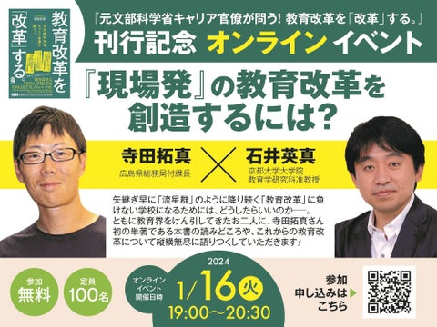 寺田拓真さんと石井英真さんが登壇し、教育改革の必要性や方向性について話します。