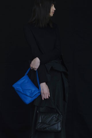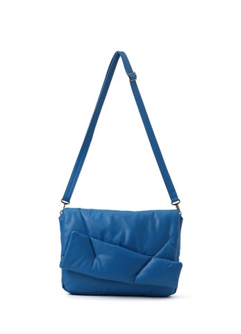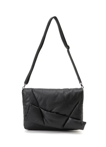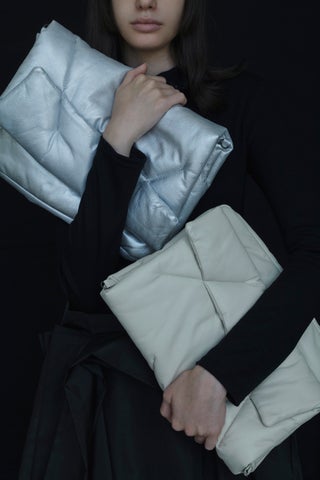 このバッグは不規則なステッチで綿を包み込んだデザインで、マグネットで開閉できるフラップが特徴です。